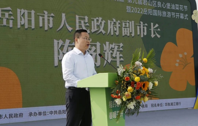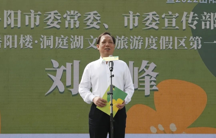 △市委常委、市委宣传部部长、湖南岳阳楼·洞庭湖文化旅游度假区党工委第一书记刘启峰宣布“天下洞庭”第九届君山区良心堡油菜花节暨2022岳阳国际旅游节开幕。