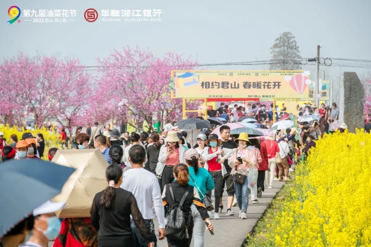 自2012年举办第一届油菜花节以来,君山区已举办8届油菜花节,特别是2021年第八届油菜花节,通过大型文艺汇演、千人旗袍花海走秀、特色农副产品展销和金色花海摄影大赛等现场活动和“花海之旅线上游”节会系列文化活动,全方位立体呈现当地丰富的人文旅游资源,共吸引踏青赏花游客约30万人次,日最高游客量3万人次,节会创收2000万元,“油菜+旅游”综合创收突破1亿元,被湖南省农业农村厅授予“湖南省十大最美油菜花乡村旅游点”荣誉称号。