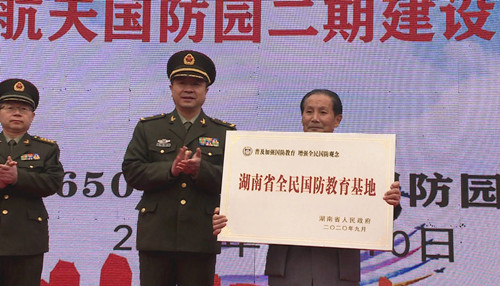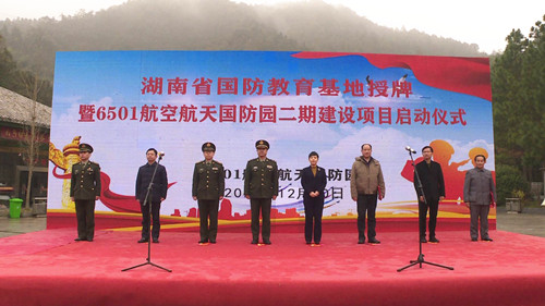 省人民政府发文,将6501航空航天国防园定为湖南省全民国防教育基地,12月10日上午举行授牌仪式。湖南省军区副政委、省国教委副主任许凤元,中共湖南省委宣传部调研员丁正阳,省军区政治工作局副团职干事方争辉,岳阳市委常委、宣传部部长马娜,岳阳军分区司令员周隽,我市市委书记谢胜,市委常委、宣传部长李孟阳,市委常委、市人武部部长郑斌等出席活动。