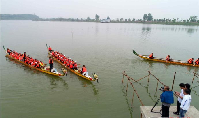 摄制组拍摄香草湖赛龙舟