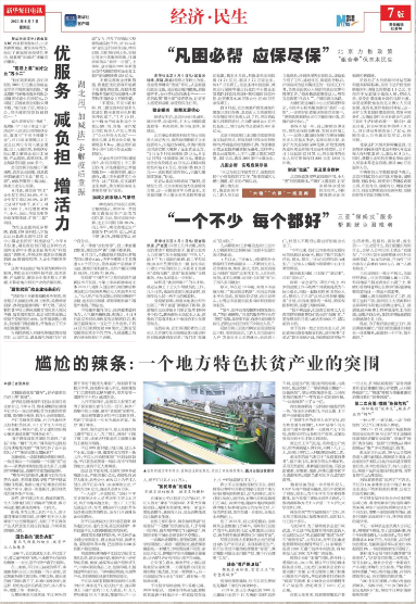 脱贫攻坚战打响以来,平江辣条企业通过安排就业、设立扶贫车间、流转土地、采购原料等举措,已经帮助5000多贫困户稳定脱贫。