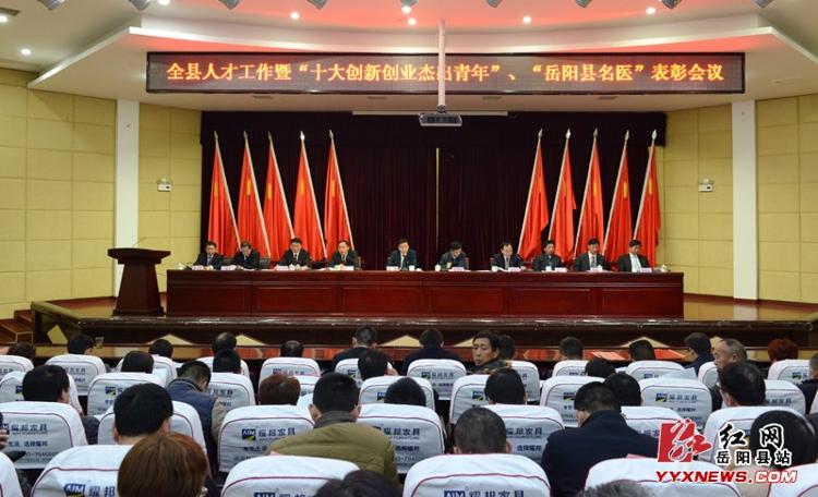 红网岳阳县分站2月24日讯(分站记者 许伟军 袁颖 李雨桑)2月23日,全县人才工作暨“十大创新创业杰出青年”和“岳阳县名医”表彰会议在县委党校召开。市委组织部相关负责人,县委常委、组织部长周鹏,副县长周里出席,县直各单位、各乡镇相关负责人参加。