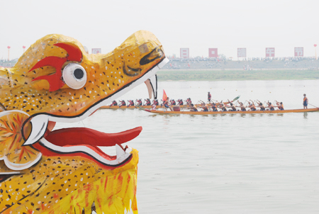 汨罗江上,龙舟赛现场各代表队在你追我赶