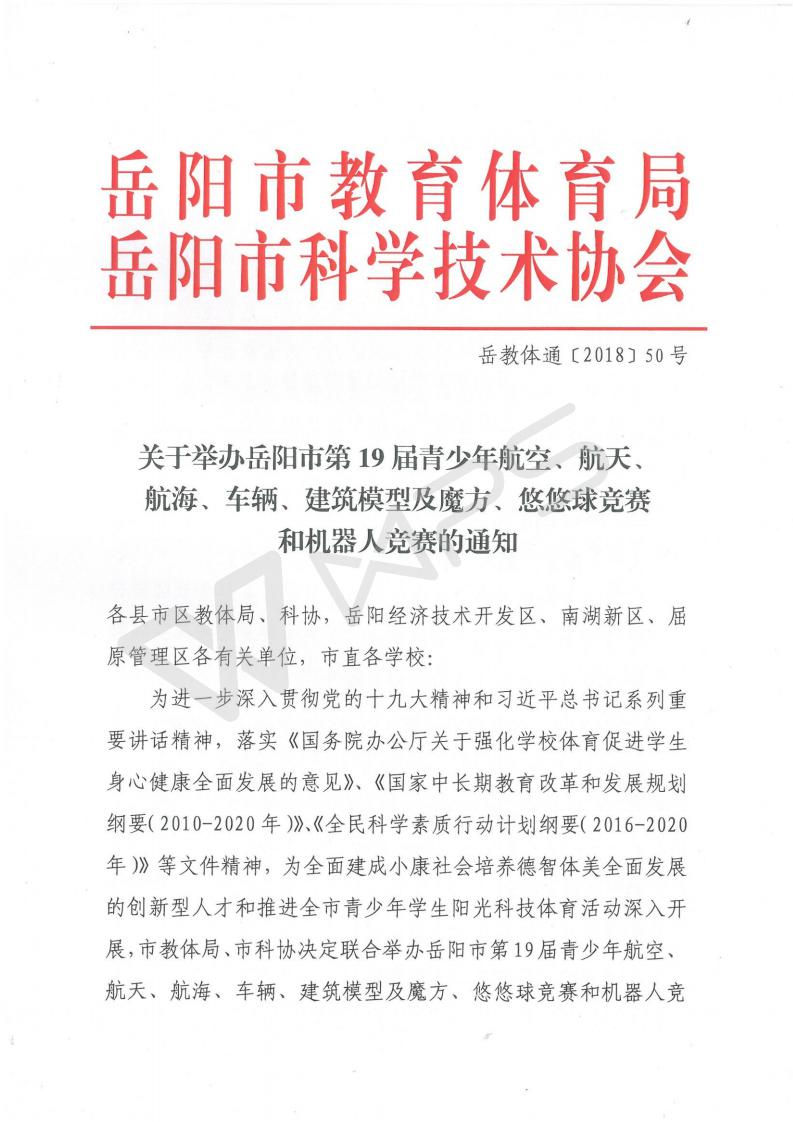 关于举办岳阳市第19届青少年航空航天航海竞赛的通知(岳教体通[2018]50号).pdf