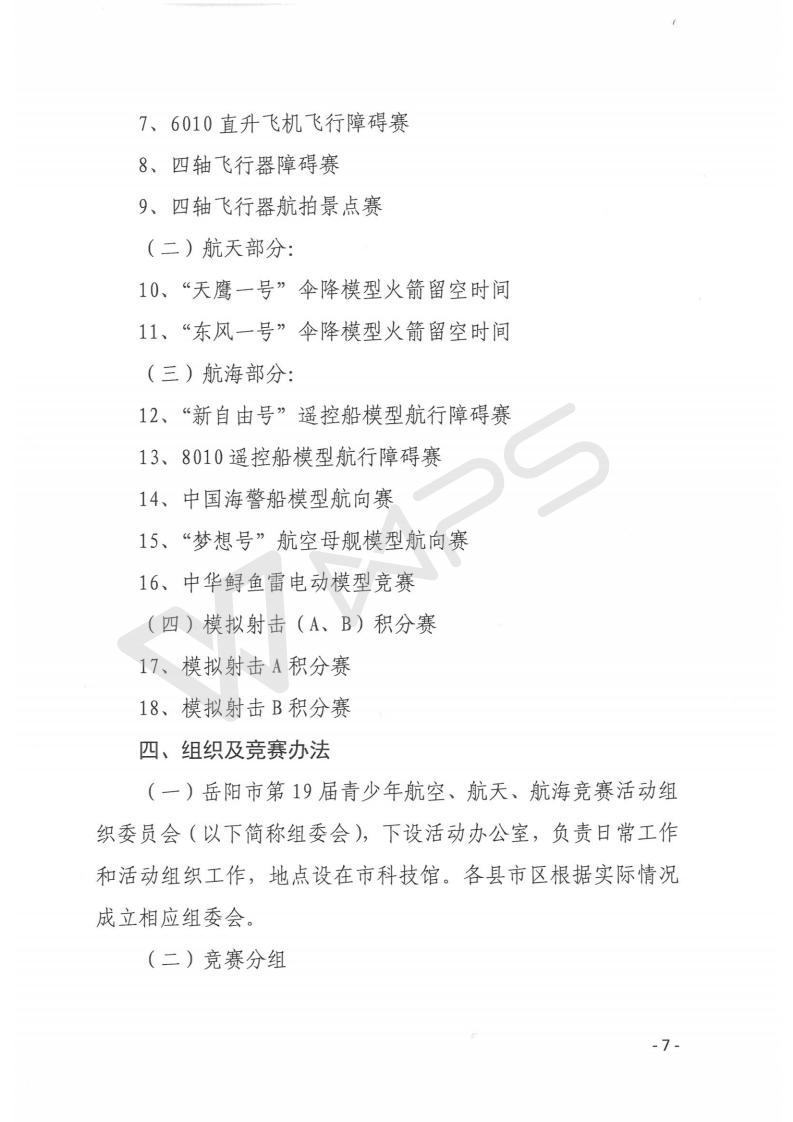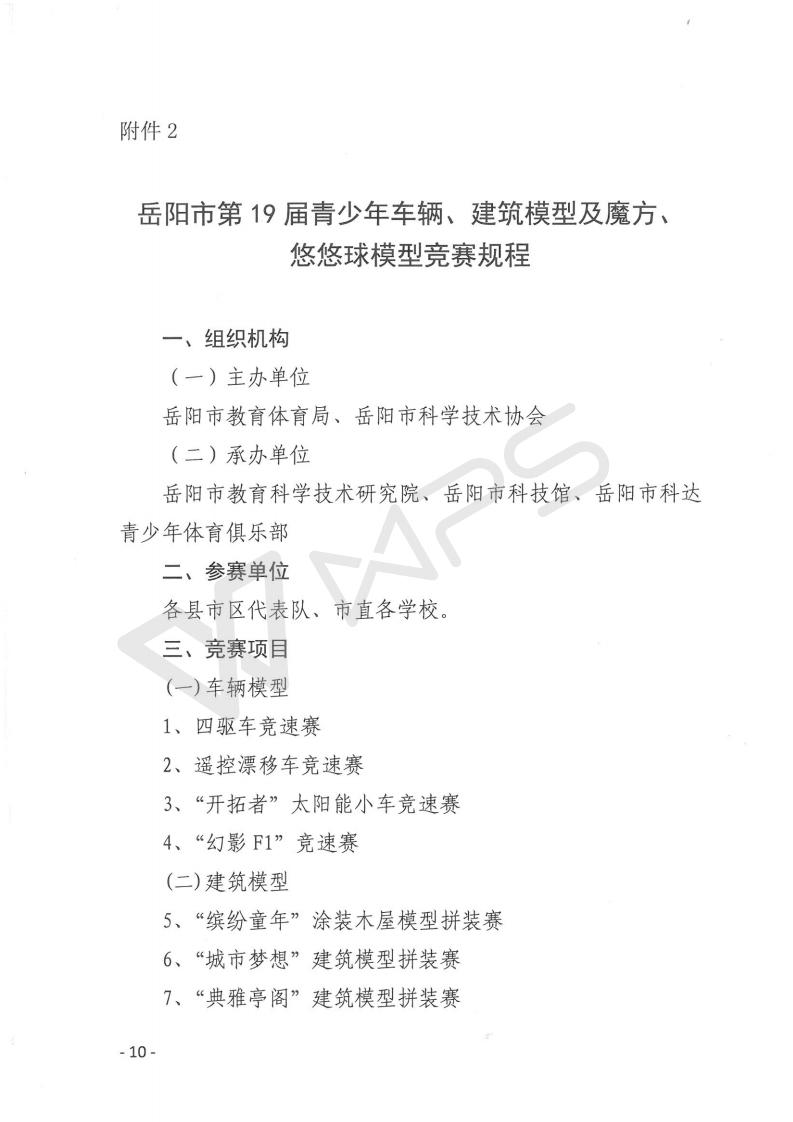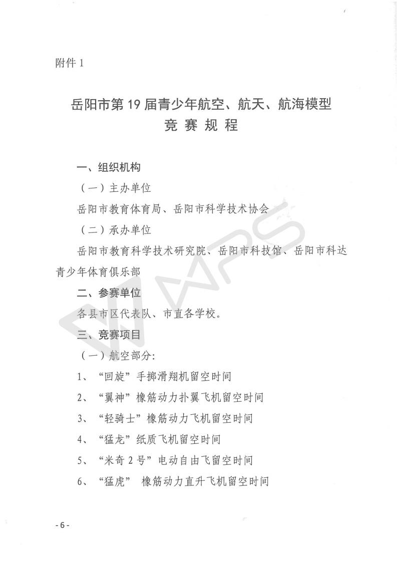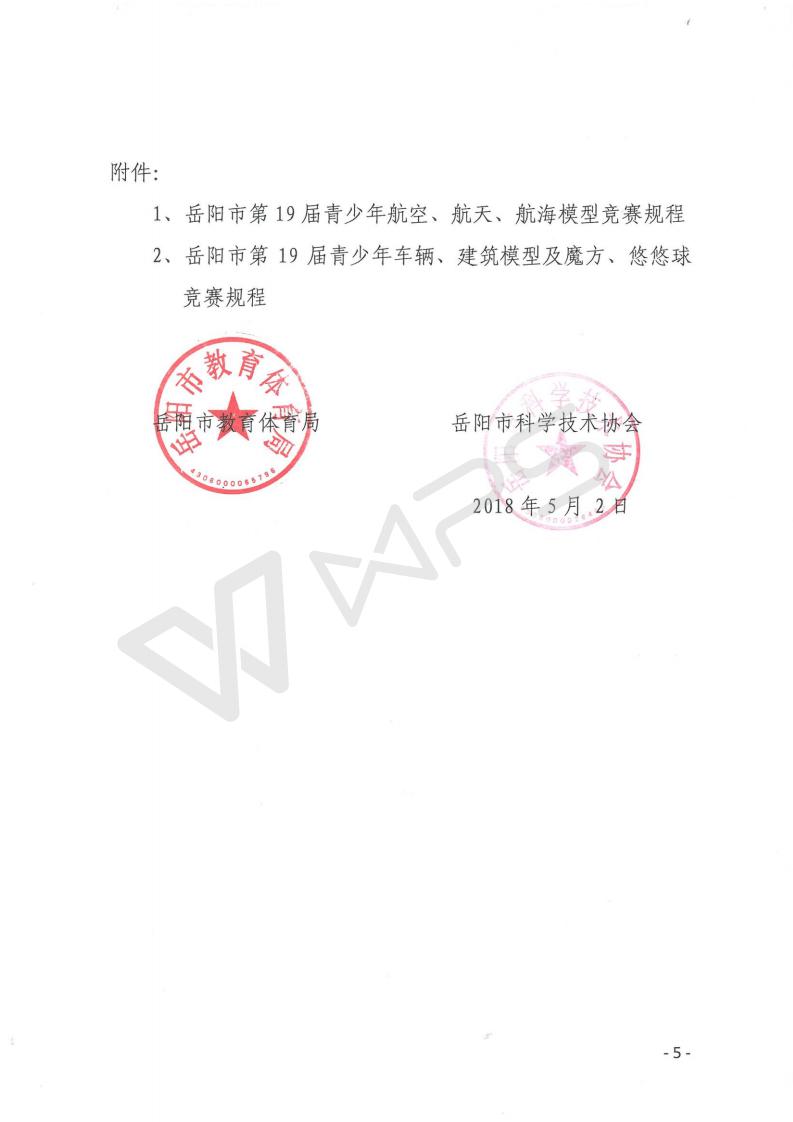 关于举办岳阳市第19届青少年航空航天航海竞赛的通知(岳教体通[2018]50号)