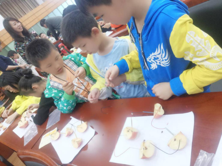 接着,科技辅导员给孩子们上了一堂水果电池制作课程。在课堂环节中,小朋友们纷纷踊跃举手回答问题,积极动手进行制作。“水果电池是利用水果中的酸性物质和金属片发生置换反应从而产生电能的一种电池,是清洁环保的能源”,科技辅导员一边讲解原理,一边走到同学中来,手把手教大家如何制作,台下的孩子在科技辅导员、科普志愿者的指导下运用相应材料一步步地操作着,最后小灯泡亮的那一刻,在场的所有小朋友都露出了灿烂的笑容。活动结束后,现场的小朋友说“从现在起,我要节约资源,利用环保新型能源保护我们的环境”,家长们则纷纷表示此次活动不仅增长了孩子们的科学知识,更对孩子们有很好的教育意义。