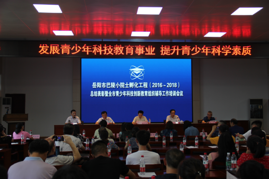 日前,由岳阳市科协、市教体局联合实施的巴陵小院士孵化工程(2016-2018)总结表彰暨全市青少年科技创新教育组织辅导工作培训会议在市科技馆召开。岳阳市科协党组书记、副主席陶沙岸,主席徐载满等出席会议,市科技馆、市教科院负责人及全市各县市区的120余名青少年科技教育工作者参加会议。