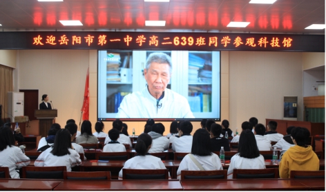 在市科技馆多功能厅,市一中高二639班的同学们正在聚精会神的观看《国家最高科学技术奖获奖科学家寄语青少年》专题片,13位科学家的寄语给予了青少年努力的方向和前进的动力,同学们都很受启迪。科技辅导员还以图文并茂的方式,向同学们介绍了8位家乡科学家的事迹,并为每一位学生送上精美的《岳阳籍院士系列》书签。来到岳阳市科技创新成果展厅,同学们对岳阳近年来在科技创新领域所取得成果表示赞叹。“我今天参观科技馆收获非常大,也深受启发,不仅认识了8名岳阳籍的院士,特别是看了家乡在科技创新领域取得的最新科技成果后深受鼓舞,我今后一定要以家乡的院士为榜样,长大后也要为家乡的建设添砖加瓦。”孙智豪在分享参观感受时激动地说。