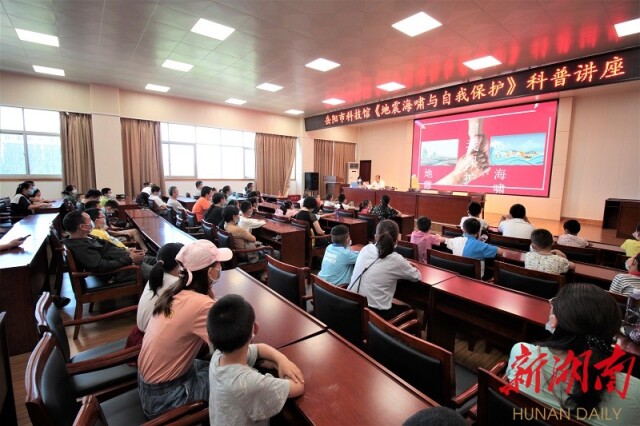 当天,岳阳市科技馆邀请年过七旬的肖植文,为前来参加“巴陵小院士孵化工程”科技课的120余名学生与家长带来了一场防震减灾科普知识讲座。