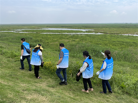 在“守护好一江碧水”展陈馆,大家身临其境地体验了洞庭湖生态治理成果,近距离感受了洞庭湖“候鸟的欢歌”“江豚的微笑”“麋鹿的倩影”,进一步增强了党员们践行习近平总书记“守护好一江碧水”殷殷嘱托的行动自觉。随后,大家来到华龙码头,身穿蓝色马甲,佩戴党徽,手拿夹子、铲子、垃圾袋等工具,对华龙码头主路两旁的湿地垃圾进行清理,以实际行动,为点亮最美长江岸线贡献力量。