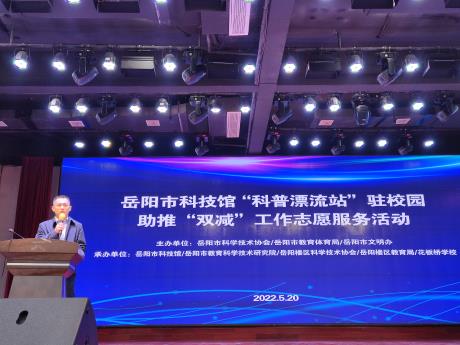 ????5月20日,由岳阳市科协、市教体局、市文明办联合主办,市科技馆、市教科院共同承办的“科普漂流站”驻校园助力“双减”工作志愿服务活动走进岳阳楼区花板桥学校,市科协主席陈跃平,市科协,市教体局、市教科院、市科技馆、市教科院、岳阳楼区科协、岳阳楼区教育局、岳阳楼区文明办等相关部门负责人出席活动。