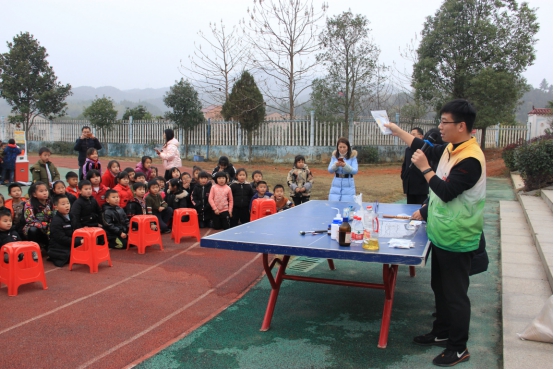 下午,科普大篷车蜿蜒盘旋十多里乡村公路,到达平江县华中小学,该校的师生早早的就聚集在操场,等待科普大篷车的到来。伴随着音乐《我要飞得更高》,航模表演正式开始,飞机在空中飞行时不断的变换姿态,孩子们不时发出惊叹的欢呼声。随后,同学们饶有兴致的参观体验了科普展品。值得一提的是,本次科普大篷车进校园活动,科普志愿者们首次为孩子们带来了科学实验表演,在科学实验表演的现场,孩子们聚精会神地端坐在台下,一双双充满好奇的眼睛目不转睛地盯着老师手里的实验器材,科普志愿者为同学们表演了《盐水发电》《法老之蛇》《神奇的汽泡》等科学实验,极大激发了孩子们对科学探究的兴趣,同学们纷纷表示:“太有趣了,原来科学可以这么好玩!”活动期间,市科技馆与科技管理中心的工作人员为该校的10名贫困学生赠送了爱心书包和文具。