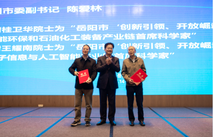主场活动中,陈爱林为桂卫华院士颁发“岳阳市‘创新引领、开放崛起’发展战略顾问兼节能环保和石油化工装备产业链首席科学家”聘书,为王耀南院士颁发“岳阳市‘创新引领、开放崛起’发展战略顾问兼电子信息与人工智能产业链首席科学家”聘书。张辉学宣读《关于认定湖南继善高科技有限公司等10家院士专家工作站为湖南省院士专家工作站的通知》,并为湖南中科电气股份有限公司省级院士工作站授牌。中国化工学会岳阳服务站、省自动化学会岳阳服务站、省石油学会岳阳服务站、省企业科协联合会岳阳服务站、湖南大学电气与信息工程学院实习实践基地相继揭牌。