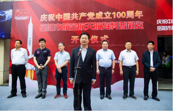 在市科技馆举办的庆祝中国共产党成立100周年岳阳市航天航空航海科普展上,总布展面积1200平方米,展览内容包括航天类大件展品20余件、航天发展史图片200余幅,航空、航海类模型展品40余件,展览通过实物、图片、模型、VR体验等形式,全方位展示我国在航天航空航海领域取得的最新科技成就。展品中,既有岳阳籍院士杨孟飞院士、向锦武院士赠送的“嫦娥五号”模型和“BZK-005无人机”模型,也有岳阳籍国家首批潜航员、载人深潜英雄傅文韬捐赠的“蛟龙号”模型,还有岳阳籍北京大学教授彭万华捐赠的东风导弹、长征火箭系列模型,中国商飞公司科技部叶木生捐赠的“C919”大飞机模型等。国家一级航天员王亚平、陈冬还分别为科普展览题词,表达对岳阳科普事业的良好祝愿。