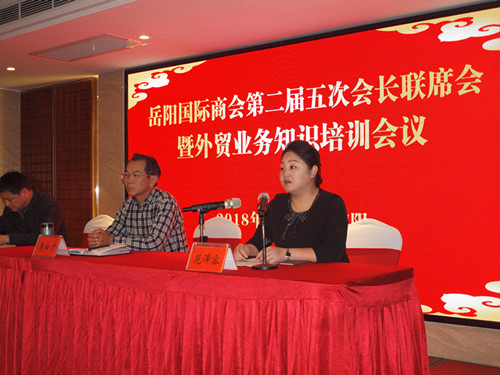 元月12日上午,岳阳国际商会第二届五次会长联席会暨外贸业务知识培训会议成功召开,市贸促会(国际商会)副会长杨政文主持会议。会议按照《岳阳国际商会章程》选举范泽容为岳阳国际商会会长,增选刘大海为副会长,改选陈细超为秘书长;批准长康实业、湘沪现代农业、东方自控等7家企业加入岳阳国际商会。会上,市贸促会(国际商会)与湖南昌言律师事务所签订了商事法律服务协议书;元亨科技董事长陈力介绍了开拓境外市场经验;浩通公司外贸经理沈万玲就外贸业务知识进行了专题讲座。