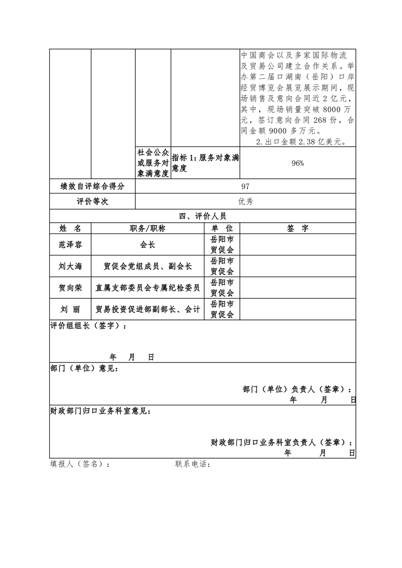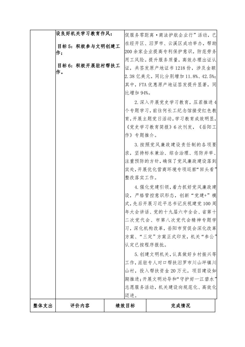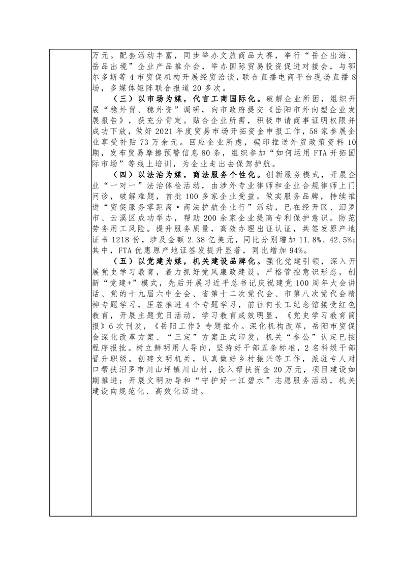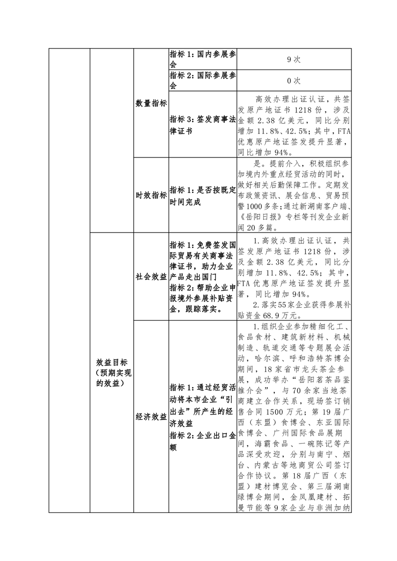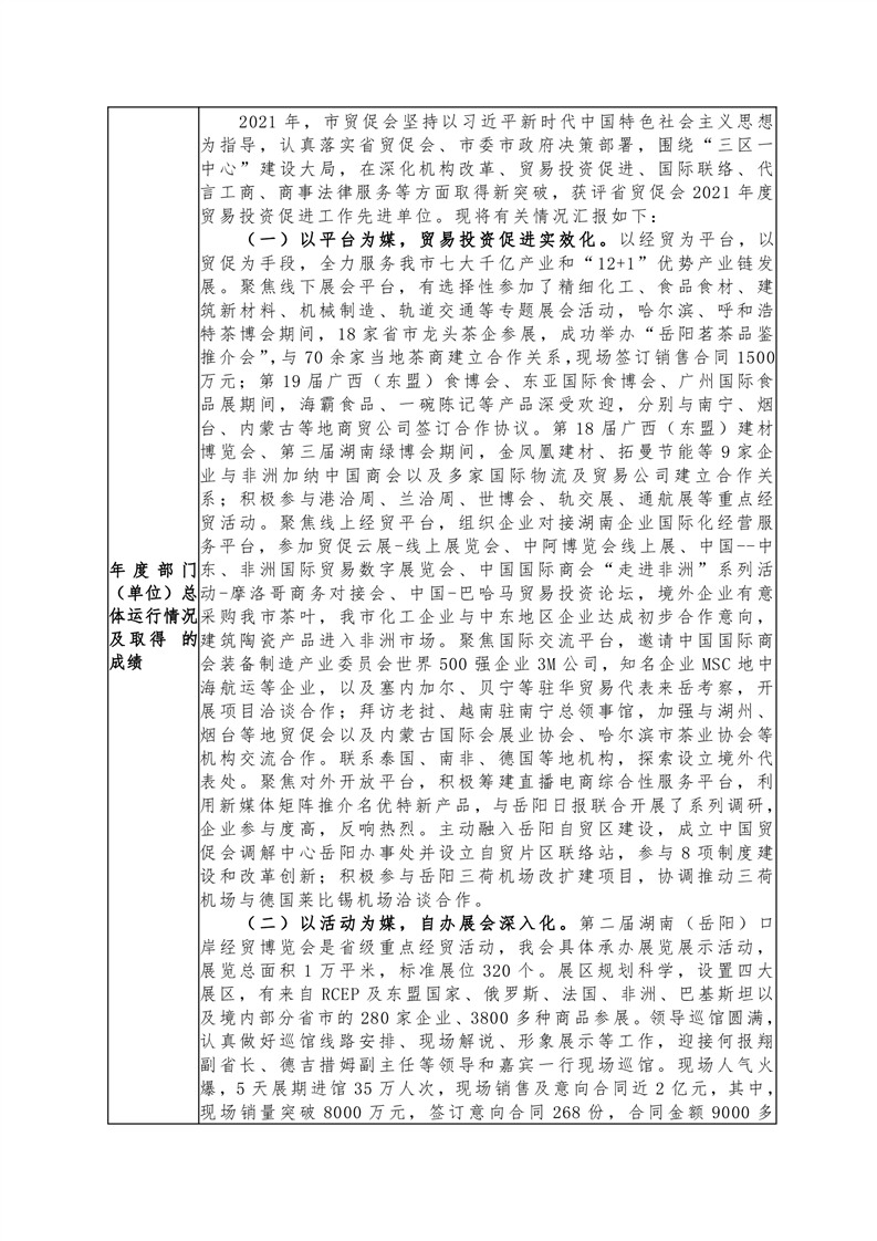 岳阳市贸促会2021年度部门整体支出绩效评价自评报告