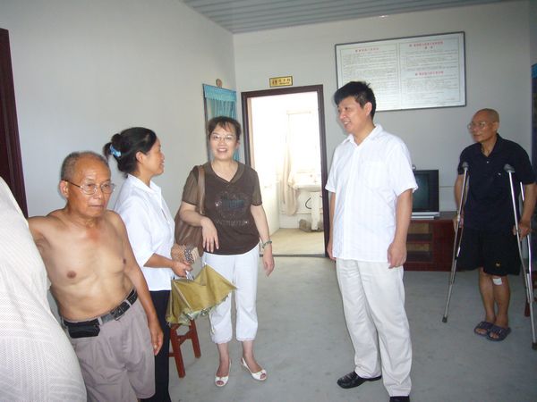 图为沈楠副理事长多次乘坐辅具流动服务车到基层为残疾人送服务、送温暖。