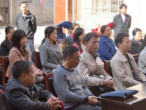 图为残疾人朋友及其家属正在听流动车工作人员举办的康复服务讲座