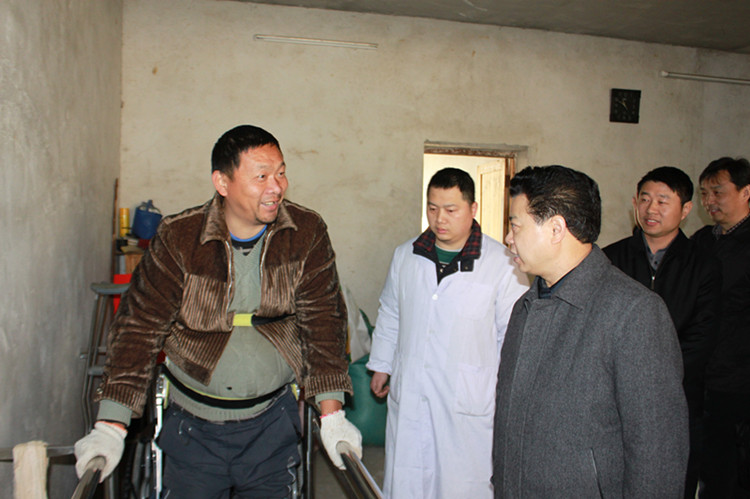 上午,盛荣华市长在经开区管委会主任王小中、市政府秘书长谈正红和市残联理事长向科军的陪同下, 来到经开区长岭社区李陆华的家中,李陆华2007年因检修自家房屋不慎意外摔伤,导致高位截瘫,去年通过市政协、市残联资助安装截瘫步行器,实施康复训练,实现了治疗性行走,生活已能够基本自理。在李陆华家,盛荣华市长关切询问他的康复和生活情况,当得知他身体恢复顺利,过完年准备去一家适合残疾人就业的企业工作时,盛荣华市长鼓励他以更加顽强的毅力和坚定的信心坚持康复治疗,生活一定会好起来。临行前,盛荣华市长还嘱咐市残联负责人多关心照顾他的日常生活,切实帮助他解决实际困难。