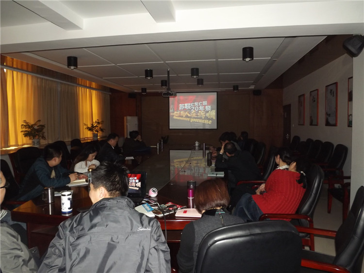 图为全体干部职工一同观看《苏联亡党亡国20年祭》