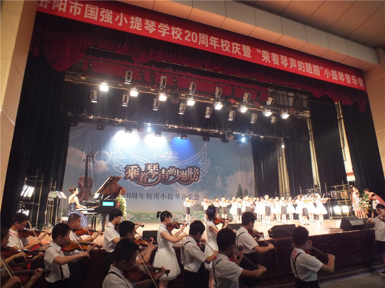 6月8日下午,湖南理工学院演播大厅,嘉宾云集,彩灯炫目,乐声绕梁,以“乘着琴声的翅膀”为主题的国强小提琴学校20周年校庆音乐会在这里举行。整场演出隆重、热烈而充满优雅气息,传承了中西方小提琴音乐文化的精髓,凝聚了国强小提琴学校20年来的师生情谊。