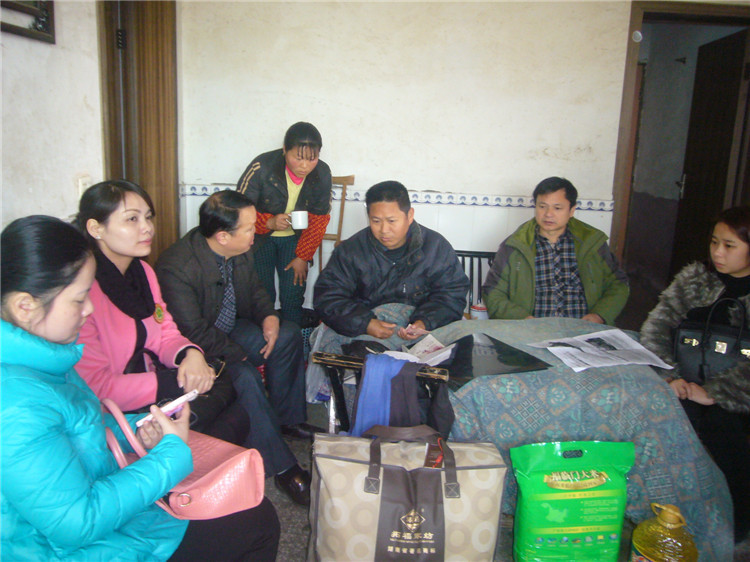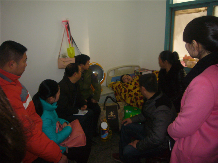 平江县伍市镇普坪村六组是爱心助残志愿者“送温暖”的第三站,这里住着一对患难与共的夫妻,丈夫叫杨再发,妻子叫毛幼辉。2009年8月17日,一个让他俩永远无法忘却的日子。那天,帮妻兄毛建辉家建房的杨再发,在三楼操作吊机时,吊机支架突然脱离钢绳的锁口,已吊到高处的几百斤货物突然下坠,一根拳头粗细的钢管从身后迅疾击中了他的后脊梁,杨再发连同吊机同时从三楼摔到了地上,倒在血泊中的他顿时不醒人事……经长沙附二医院紧急抢救,杨再发死里逃生。可他的脊柱骨、肋骨、右腿及左手腕、盆骨等十几个部位都出现了不同程度的骨折。医生对毛幼辉说:他已残废了,可能再也下不了床了!由于伤势过重,神经受损,杨再发至今仍然大小便失禁,四年过去了,在贤惠而坚强的妻子毛幼辉的悉心照料、鼓励下,让人意想不到的是,杨再发目前竟能坐起来了,在妻子的搀扶下,他开始学着走路,现在他已能够借助拐杖一瘸一拐地小步行走了。然而,要想重新下地劳动,要想重新挑起这个风雨飘摇的家,“我连这个梦都不敢做了!”说到这里,夫妻俩泣不成声……妇幼保健院助残志愿者工作站负责人龙洋和卢敏说:“最难的日子你们已经熬过来了,我们大家一定会陪你们勇敢地走下去!”