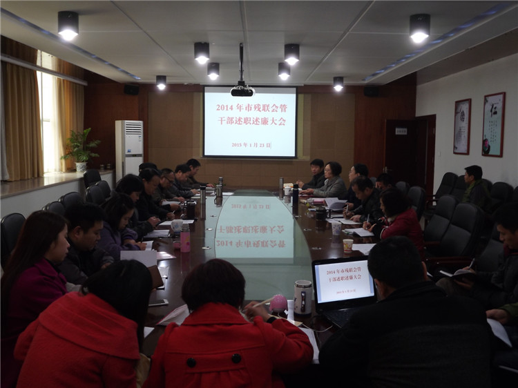 述职结束后,向科军理事长作了总结讲话,对2014年各项工作给予了“作风务实、开拓创新、成绩优良”的充分肯定。他说,今天的述职会议不仅是大家的工作成果展示会,也是工作经验和体会的交流会。一年来,全市残疾人实事工作任务超额完成、《政府工作报告》中的贫困残疾人住房解困目标任务稳步推进、惠残政策规范落实、康复救助项目有效拓展、辅助适配力度不断加大、扶贫工作扎实开展、教育就业工作有力推进、残疾人就业保障金征收和残疾人证办理等依法行政水平明显提高、残疾人专项调查工作有序进行、残疾人文体成绩优异、社会力量助残有声有色、“自强与助残”文化建设得到加强。这些成绩的取得,得益于中省残联的精心指导和市委市政府的正确领导,得益于会党组的精心决策和干部职工的全心参与,得益于全市残疾人工作者和广大残疾人朋友的鼎力支持。针对2015的工作,他指出:一是要加强学习,要加强政治业务学习、工作理念和工作方法的学习;二是要突出惠残实事办理,突出社会力量助残,加强自强与与助残文化建设,确保重点工作稳步推进,常规工作有序开展。三是要进一步强化机关作风建设,大家要通过观看学习《作风建设永远在路上》专题片,有所启示,有所警醒,要不断增强严守党纪、党规和工作纪律的自觉性,以优良的工作作风为残疾人服好务。