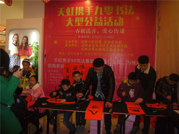 “春联送喜,爱心传递。”2月6日―8日,由省残疾人福利基金会岳阳市分会与岳阳电视台“善行天下”栏目、岳阳市爱心助残志愿者协会、岳阳九零书法艺术学校联合主办的“爱心助残志愿者义卖春联为贫困残疾人送温暖活动”,分别在步步高超市和天虹百货浓情启动。