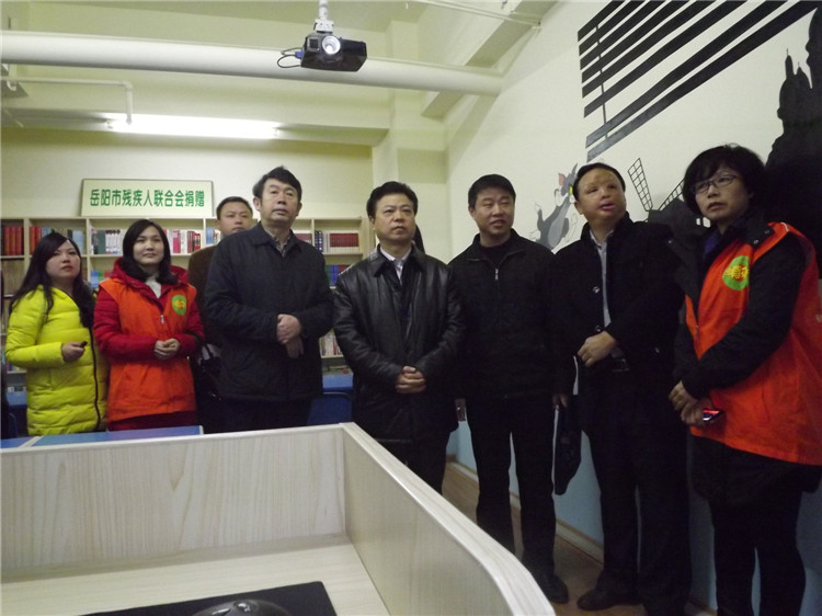 盛荣华市长和徐新启部长认真观看市残联组织全市爱心助残志愿者开展“把爱送进家”活动的掠影