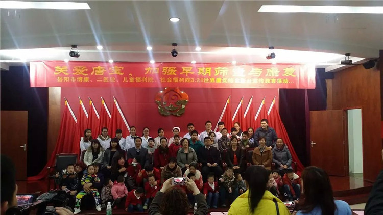 唐氏综合症又称二十一三体症。是由人体的第21对染色体的三体变异造成的现象,是一种因婴儿细胞染色体异常(基因突变)而引发的疾病,并非遗传性疾病,也不会传染。世界上任何一对身体健康的普通夫妇都可能生出唐氏宝宝,这与人的种族、血型、学历、地位毫无关系。目前,唐氏综合症虽然没有治愈的方法,但对患有唐氏综合症的孩子进行早期干预、康复和教育,其运动、语言及其他方面的能力可以得到极大提高。近年来党和政府对这一特殊群体给予了越来越多的关爱和帮助,我市自2010年开始承办国家、省、市政府重点民生实事贫困残疾儿童抢救性康复项目,其中就有一部分是唐氏儿童的康复救助,他们在市博康康复中心、市妇幼保健院、汨罗市特校、华容县特校等定点康复机构接受半年的康复训练,国家为其解决1.2万元/人的康复训练费用,在康复师们的精心培育下,他们中的大部分都有不同程度的改善,有的还进入普幼、普小和健康的孩子一起快乐地学习、生活。本次宣传活动就是希望通过主题宣传、专题讲座、家长交流、作品展览、咨询、义诊、发放宣传资料等形式,鼓励家长和社会给予唐氏宝宝更多的关爱和帮助。