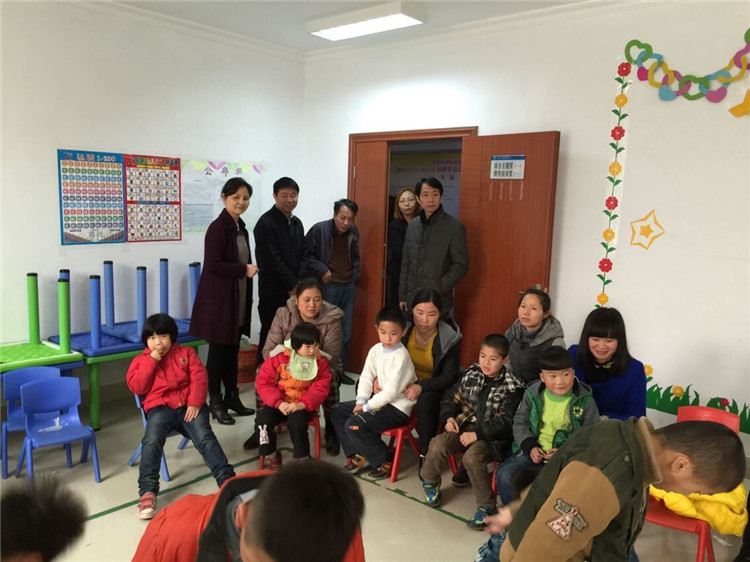 图为向科军理事长陪同内蒙古残联副理事长马俊学等一行人参观博康康复中心智障儿童的康复训练
