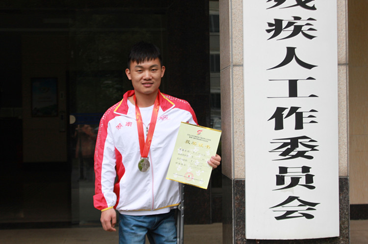 4 月17日 ,在全国第九届残疾人运动会举重项目49公斤级比赛中,我市残疾人运动员柴驰与14名来自全国的举重高手同场角逐,通过顽强拼搏,他以147公斤的好成绩荣获银牌,得到中国残联和省残联的高度评价,被专业人士称为“大有希望的一匹黑马”。