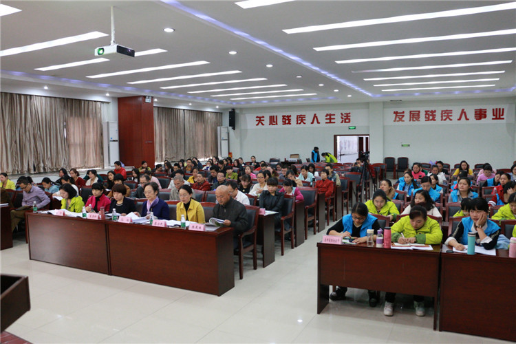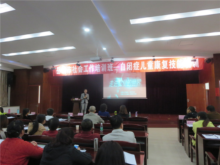为了加强康复人才队伍建设,提高全市自闭症儿童康复训练技术人员执业水平,并让家长掌握更多科学的康复知识,促进我市自闭症儿童康复事业的发展。11月3至4日,由岳阳市残联主办,市爱弥尔自闭症儿童训练中心承办的“岳阳市社会工作培训班――自闭症儿童康复技能培训班”在岳阳残疾人服务中心开班。国内知名专家----北京星星雨教育研究所教学部主任王秀卿、湖南省残疾人康复研究中心自闭症部主任戴峥嵘以及岳阳市幸福心理研究所的心理督导师张杨佳老师等专家现场授课,从专业角度讲解和传授自闭症儿童康复知识。市残联调研员沈楠、市残联康复科科长蔡亦民、市残联残疾人康复管理服务中心主任陈更生和湖南爱弥尔执行总干事潘郁等相关负责同志出席开班仪式,来自岳阳楼区康复站、市妇幼保健院、市博康康中心、市珍爱自闭症康复中心、华容县爱贝尔自闭症康复中心等7所机构的130余名社区康复协调员、自闭症儿童康复教师和家长参加了学习。