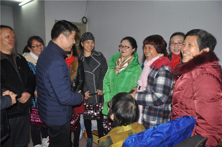 一走进简陋而又整洁的周如琴家中,向科军理事长就坐到周如琴身边对她问寒问暖,向科军指着刘美满、刘楚琴、冯友珍、任银兰和董大宪等同志说:周大姐今天的“幸福生活”来之不易,离不开你们大家多年来的深情关爱与无私帮助。衷心感谢你们这一群“爱心大妈”,你们的故事谱写了新时期邻里守望、助残为乐的动人篇章。向科军说,郑州“陇海大院”一群普通人39年如一日照顾高位截瘫残疾人高新海的故事感动了中国,眼下,我们“枫树新村”你们这群好心人,爱心接力帮助周如琴的故事温暖了整个城市!