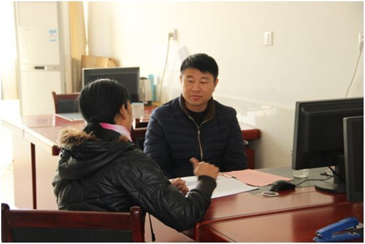 向理事长与与训智障孩子家长个别沟通,进行家长满意度测评