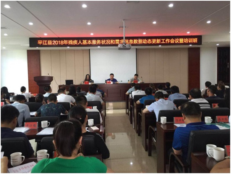 6月19日,平江县残联召开了残疾人基本服务状况和需求信息数据动态更新工作工作会议暨培训班。全县24个乡镇和园艺场分管残联工作副职、乡镇残联理事长、信息采集员共100余人参加了会议。会议由县政府办副主任李芸芳主持。分管副县长艾志军出席并讲话。
