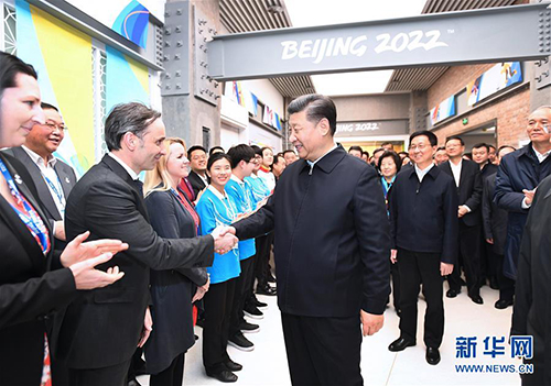 下午3时30分,习近平乘车来到石景山首钢园区。首钢石景山钢铁主流程停产后,北京冬奥会组织委员会落户于此。习近平走进北京冬奥会展示中心展厅,了解北京冬奥会、冬残奥会筹办工作、场馆和基础设施规划建设等情况。习近平不时察看、询问,了解到筹办工作有序推进,他表示,办好北京冬奥会、冬残奥会,是党和国家的一件大事。要全面落实绿色、共享、开放、廉洁的办奥理念,充分考虑场馆的可持续利用问题,高标准、高质量完成各项筹办任务。