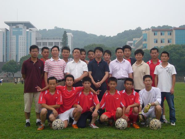 同志与湖南省聋人足球队教练员、运动员出征前合影留念