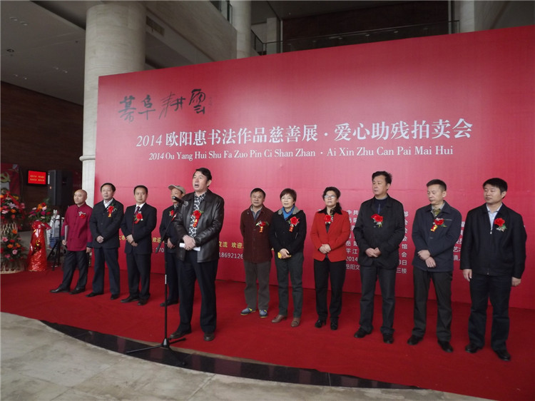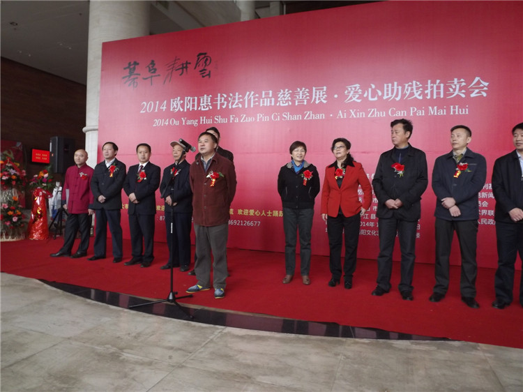 欧阳惠是我市知名书法家、中国书法家协会会员、平江县书法家协会主席、平江县肢残人协会主席。他的“幕阜耕云?2014欧阳惠书法作品慈善展”由市委宣传部主办,市残联、湖南省残疾人福利基金会岳阳市分会、市文联、市文广新局等部门、单位承办,会展中心和市群众艺术馆等单位共同协办。