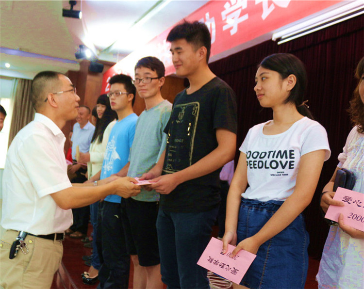 岳阳市助残先进人物、岳阳市爱心助残志愿者协会拓福家纺志愿者工作站站长、湖南拓福家纺有限公司总经理危李先生为贫困学子颁发了助学金