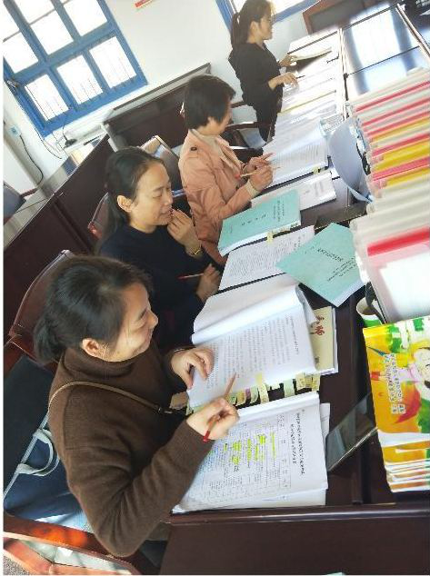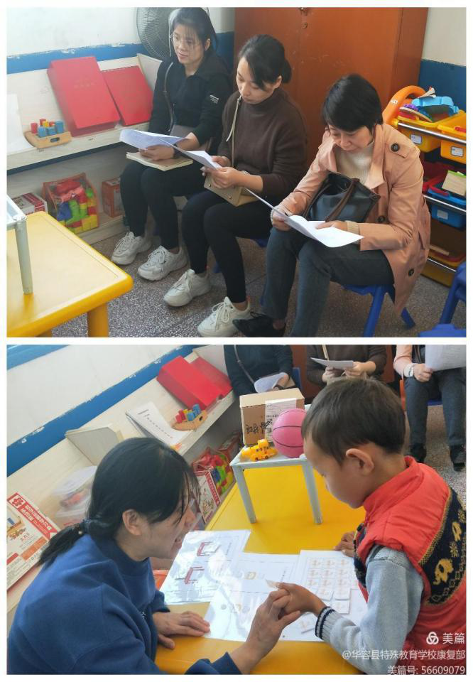 星级评定专家们在个训室听唐红老师的个训课《区分上面和下面》