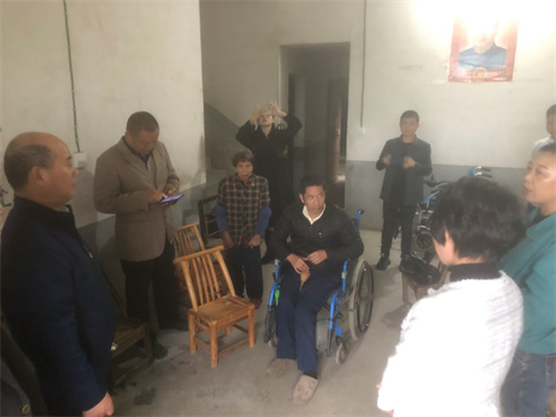 图为刘利文书记、李建军理事长入户调研困难残疾人家庭无障碍改造工作