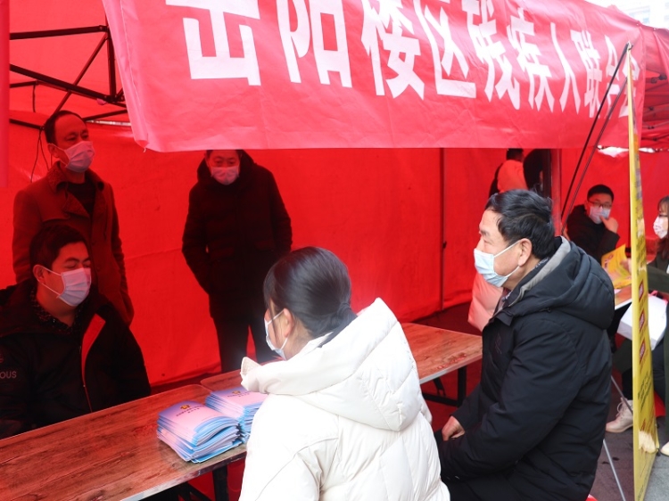2月24日,由岳阳楼区人社局、岳阳楼区残联等单位联合主办的“春风行动暨湘农湘爱·春暖农民工就业援助月”现场大型招聘会在岳阳友阿广场西侧举办,有5家企业专为残疾人设置了招聘岗位。
