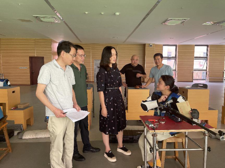 图为陈芳理事长率班子成员看望备战省残运会在训残疾健儿陈千慧