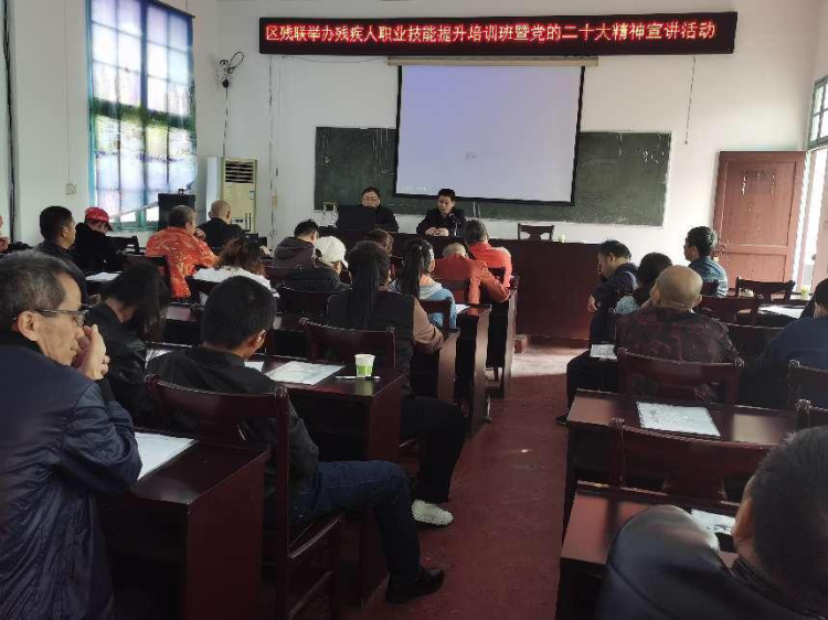 为进一步深入学习贯彻党的二十大精神,屈原管理区残联结合举办残疾人职业技能提升培训班,在残疾人领域深入开展党的二十大精神宣讲活动,全区30多名残疾人参加培训活动。
