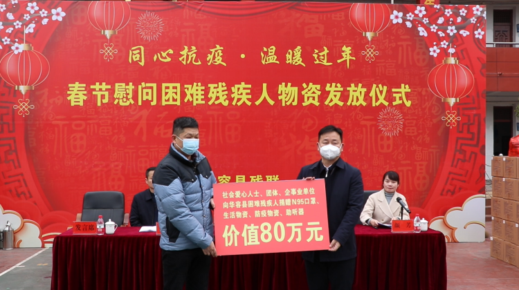 1月16日,华容县残联积极践行文明新风,在春节来临之际举办“同心抗疫·温暖过年”春节慰问困难残疾人物资发放仪式,为残疾人送关怀送温暖送祝福。本次活动得到社会各界爱心人士、团体、企事业单位的支持,共筹措价值60万元的助听器322台、价值10万元的N95口罩167箱、价值10万元的生活物资和防疫物资。