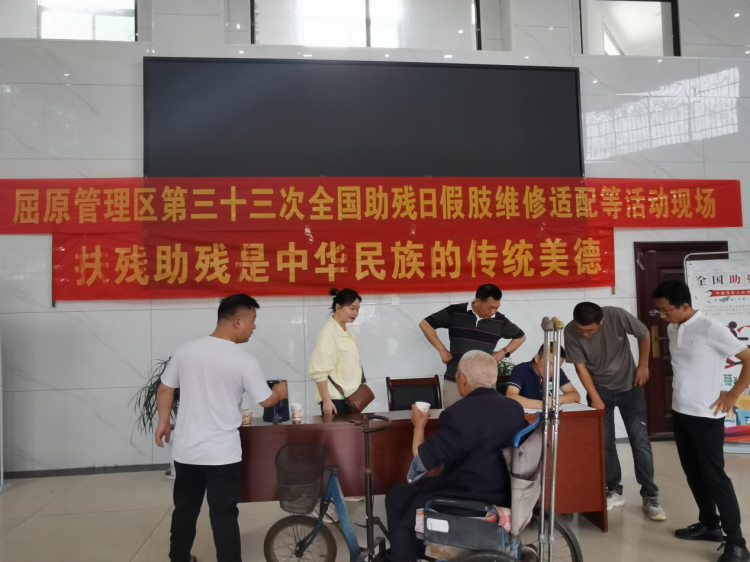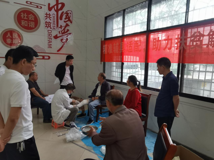 5月16日,区残联邀请岳阳市博康假肢中心专家组来我区开展假肢、矫形器筛查评估、维修维护、取型适配,在区残联办公楼一楼大厅,全区30多名残障人士参加助残活动。