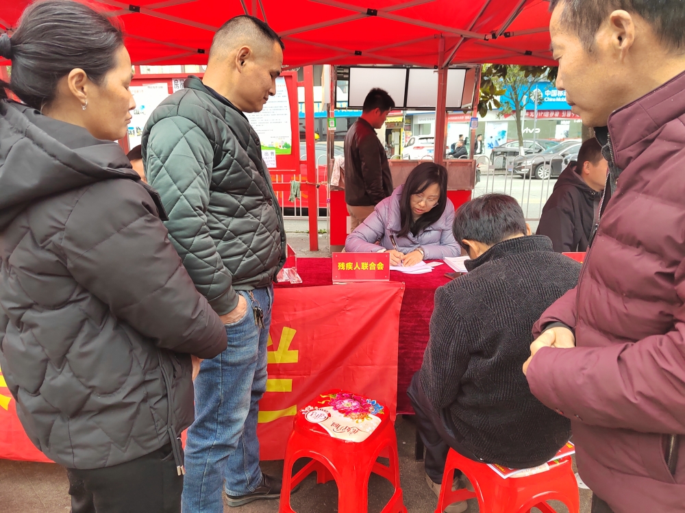 2月18日至19日,华容县2024年“春风行动”暨就业援助月首场大型招聘会在城市广场落幕,县残联积极搭建用人单位与残疾人的沟通桥梁,在现场特设残疾人专场招聘。