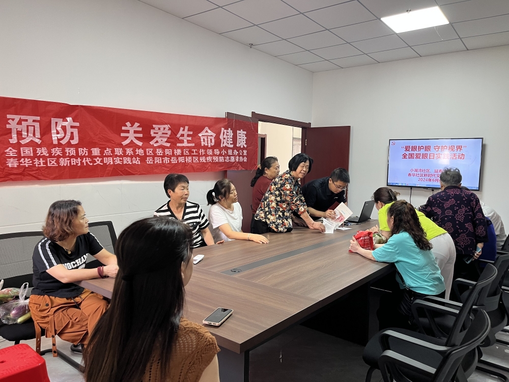 岳阳楼区残疾预防创建办联合春华社区新时代文明实践站邀请岳阳爱尔眼科医院专家组为春华社区老年居民开展以“爱眼护眼 守护视界”为主题的残疾预防宣传活动。