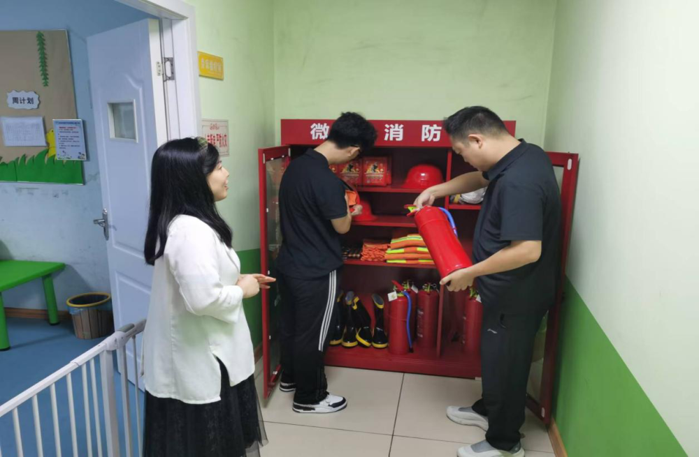 “机构内消防设施齐全吗?这些消防器材都是什么时候买的?平时有没有组织家长和小朋友进行过消防演练?”